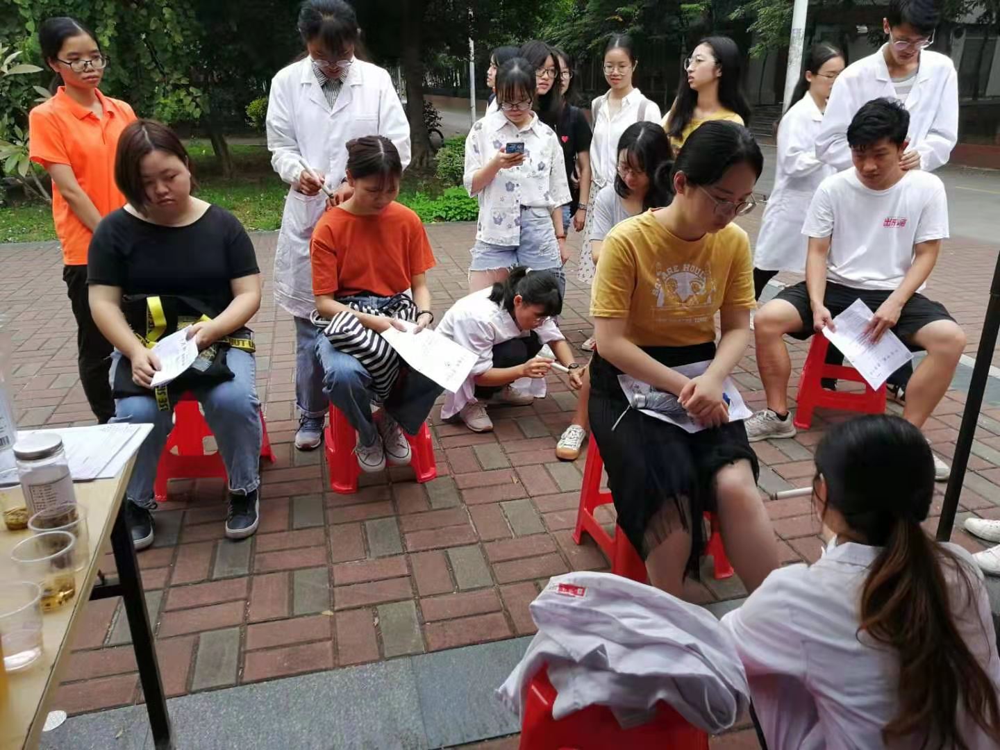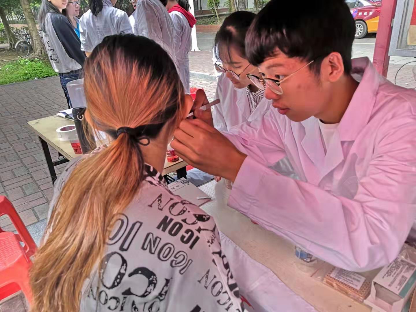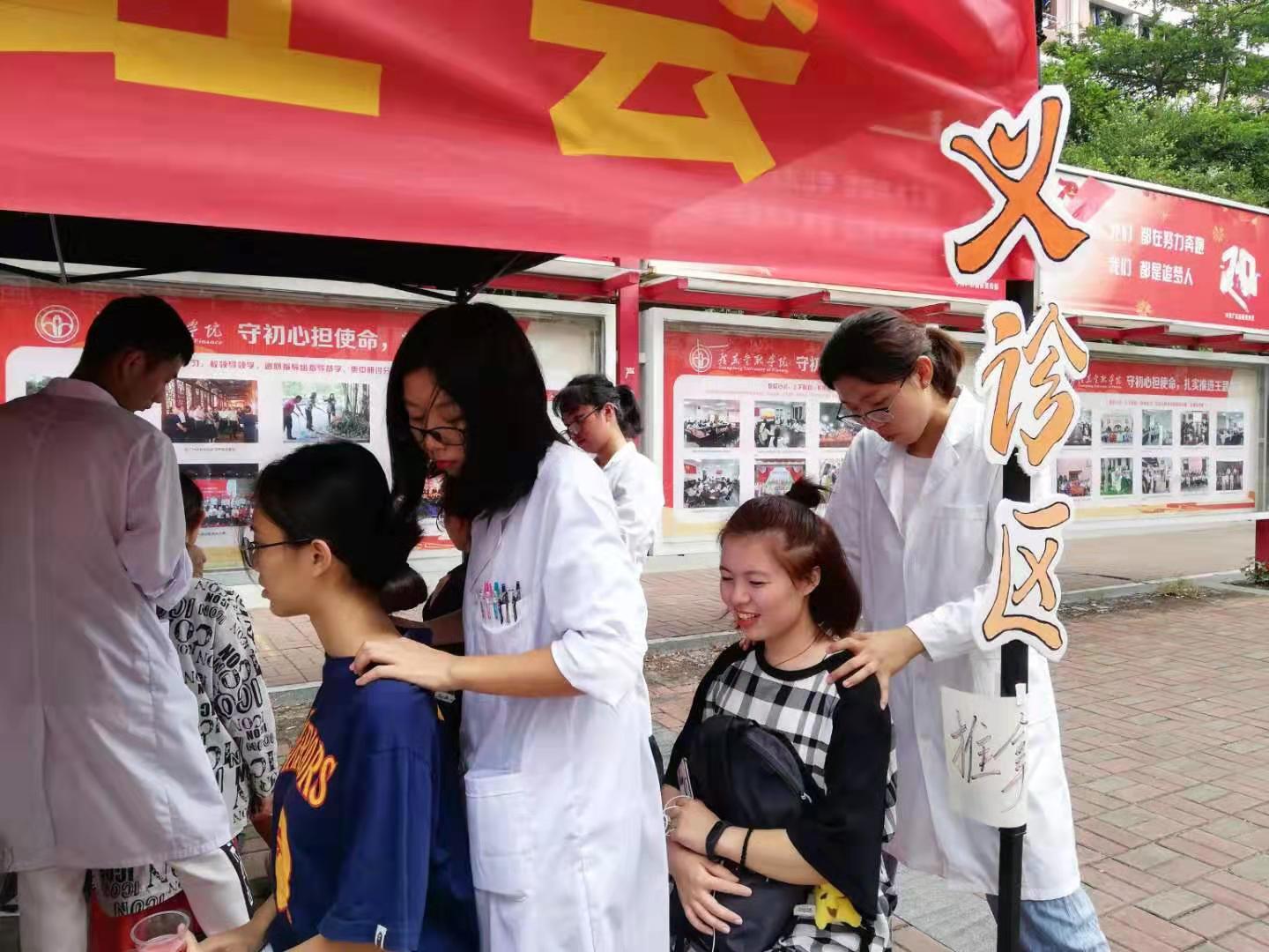 为响应党中央,上级党委、党总支关于开展“不忘初心,牢记使命”主题教育的号召,18级眼视光学与中西医专业的同学于2019年10月26日在广东金融大学经济与贸易学院举行了为期一天的科普宣传活动。本次活动共有22名同学参加,旨在通过开展推拿、贴耳穴、艾灸等具有中医特色的服务,让更多的同学接触中医,感受到中医的魅力。