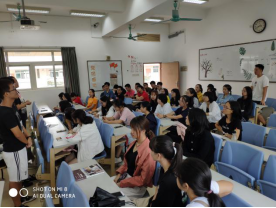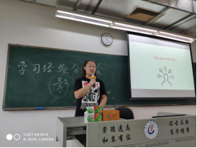 活动由19级影像班学习委员柯杰华主持。主持人提出了什么是大学的开场白拉开了活动的序幕,引发了同学们的思考。接着把众多刚步入大学的同学遇到的一些问题、困惑提出来。接着是对18级影像师兄师姐们的介绍,分别是吴晓怡师姐、朱玉师姐、徐洁宁师姐以及李志聪师兄。每一位师兄师姐都是成绩优异,或是班委团委的任职者,亦或是社团组织的部长,能把学习和课余生活兼顾得很好,令人钦佩。师兄师姐们依次上台分享自己的学习经验。先是徐洁宁师姐,她在系统解剖学这门课上的理解较为到位,告诉我们要利用自己的空间想象能力,在自己的身体上重塑这些结构;她还提醒我们要多注意各个学科的交叉点,可事半功倍。接着四级英语成绩优异的朱玉师姐认为要稳过四六级,必要的词汇背诵和习题练习必不可少,还建议同学们下载BBC等的听力材料练习听力,对提高听力成绩以至提高四六级成绩大有裨益。对于学习自主积极性性,她也做了强调,特别是英语科目。然后是李志聪师兄上台,他调侃了一下组织学与胚胎学的难点在于你看不见摸不着,而且课程很紧,同学们学起来确实是吃力。他建议我们多做人卫的习题,提高成绩离不开刷题,刷题可以让你找到基础薄弱的地方,加以巩固。另外要把书上的文字和图片联系起来,不可分开来学,,否则一无所得。最后是吴晓怡师姐上台,她对于医学生物细胞学这门课程提出几个建议:首先上课一定要认真听讲,上课时把书本上的案例听懂了课后便不需要花过多时间研究,可着重复习书本上的定义和原理;此外,刷题很重要,只有足够的练习才能取得优异的成绩;特别强调了要花足够多的时间去学习去巩固知识……接下来是19级同学们的提问时间,对于师弟师妹们的踊跃提问,师兄师姐们都一一进行了详细的解答,包括学习和生活方面都给出了不错的建议。