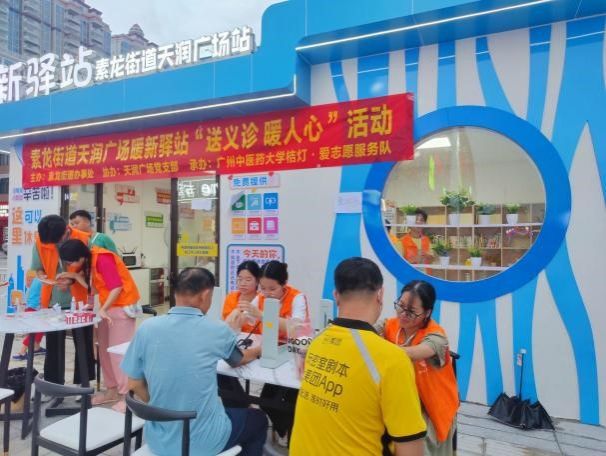 7月17日-7月20日,队伍在凤塘村村委开展基础医疗服务活动,志愿者们将理论运用于实践,娴熟的手法、暖心的关怀为凤塘村村民们带来了“家门口”的暖心服务。因该志愿活动受到罗定市素龙街道办事处的广泛认可和大力支持,7月19日,素龙街道团工委联合队伍在天润广场暖“新”驿站为外卖小哥、商场保安等群众带来免费的基础医疗服务活动,服务人次高达200。志愿者们尽心服务为民众送温暖,民众们则欣喜热情,热烈欢迎志愿者们的到来,纷纷表示这样的活动以后可以多举办。