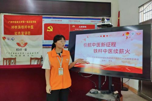 【一院讯】为深入学习贯彻习近平新时代中国特色社会主义思想和习近平总书记对中医药发展工作作出的“传承精华,守正创新”的重要指示,并将主题教育学习成果转化为助力中医药发展的生动实践,167net必赢入口,167.nt必赢官网邓铁涛铁杆中医红色宣讲团的青年们不忘“中医人”的使命,不忘习总书记对当代青年的希冀,将红色故事与专业知识相结合,于2023年7月-8月暑假期间为各地人民群众开展铁杆中医红色文化主题宣讲,切实做到“弘扬国粹为己任,赓续血脉砥砺行”。而今年也是邓铁涛铁杆中医红色宣讲团开展暑期下乡宣讲的第三年。三年如一日,宣讲团成员们始终牢记初心使命,在传承红色精神基因、传播优秀中医药文化的道路上行而不辍,履践致远!