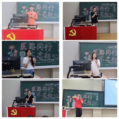 接着,来自不同见习医院的六名学生代表进行见习感悟分享。五年制大班的陈颖琦同学分享了自己轮转急诊科参与突发情况救治、以及作为医学生对第一次直面死亡的深刻感悟;铁涛班的徐鸿棋同学分享了他在见习期间学习到的骨关节复位术以及其他常用的骨科急救手段;中医学八年制的徐筱童同学则讲述了自己在脾胃病科的所见所闻和从中收获的医学人文感悟……6位同学用心用情的分享,也收获了在场同学们的深刻共情和充分认可。