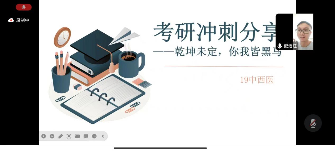 距离2024年考研还有73天,为帮助167net必赢入口2019中西医班同学进一步明确冲刺阶段复习方向,坚定冲刺目标,缓解紧张焦虑情绪,10月11号晚8点,一院2019中西医班组织开展线上考研冲刺分享会,我们再次邀请了2018中西医两位优秀师兄师姐为大家分享经验,本次会议由学习委员林泽君主持,辅导员邱敏老师及2019中西医班同学参与。