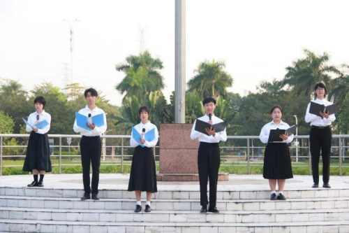 殷殷之情系华夏,寸寸丹心为家国。歌舞表演结束后,23级学生代表在国旗下满怀激情地朗诵诗歌《“新”青年》,“泱泱华夏”带领师生们感受中华民族的伟大,“五四青年到新时代青年”唤起同学们为国奋斗的初心。爱国情怀将始终给予一院学子奋勇拼搏的力量,成就他们实现超越自我的梦想。