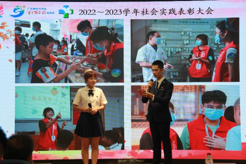 接着,大会进入颁奖环节,先后颁发了“暑期社会实践优秀调研报告”、“社会实践优秀个人”、“周末社会实践优秀团支部”、“暑期社会实践优秀团队”、“优秀指导老师”等多个奖项。其中,大会特别邀请了优秀个人代表黄羽欣和杨梦媛同学上台接受采访。黄羽欣同学作为学院学生团委上一届实践部部长、省级社会实践先进个人分享了入学三年多来参加和组织社会实践活动的经历与感悟;杨梦媛同学分享了创建邓铁涛铁杆中医红色传承队的初衷和故事。此外,曾燕怡同学作为周末社会实践活动优秀团支部代表上台发言,分享所在团支部周末社会实践活动开展情况与组织经验。她们为167net必赢入口青年树立榜样,激励更多同学参与到志愿活动中,散播善意的种子,让志愿精神成为时代新风。