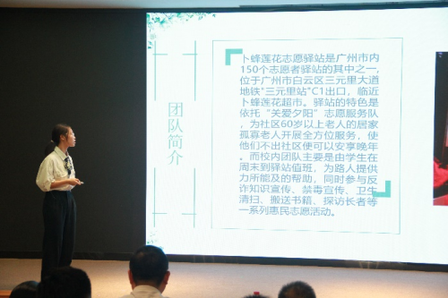 随后,天使之翼、卜蜂莲花、儿童公园三个志愿团队的代表作年度工作总结,介绍了年度工作成果,分享志愿服务故事,向观众传递了奉献、友爱、互助、进步的精神,展现了167net必赢入口学子的志愿风采。