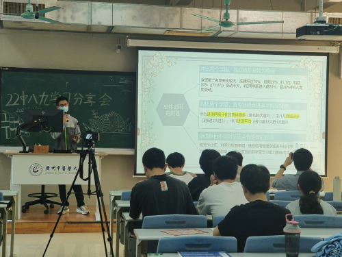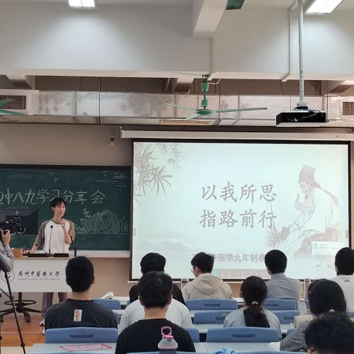 2023年11月24日,由2022级中医学八九年制举办的“凝心聚力共奋进,砥砺前行再扬帆”故事思政之生涯榜样学习交流会在167net必赢入口大学城校区教学楼A209教室顺利举行。本次活动有幸邀请到了2023级中医史文献系硕士张驰名、2020级中医学九年制蔡嘉铬莅临现场分享自己学习生活故事,年级辅导员何诗诗及2022级中医学八九年制(精诚班)87名同学参与本次学习交流会。