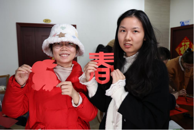 这场新春活动,不仅是一场欢乐的聚会,更是一场文化的盛宴。主办方精心策划了剪纸与书法对联体验活动,让师生们在动手的过程中,深入感受中华优秀传统文化的魅力。学生们剪裁着红纸,书写着对联,一笔一划都充满了对传统文化的热爱和敬仰。这些对联和剪纸作品,不仅装点了现场,更传递出了浓浓的年味和文化气息。