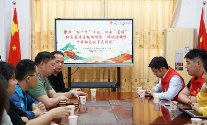 “红医传薪”队队员在开展“邓铁涛铁杆中医”红色故事宣讲