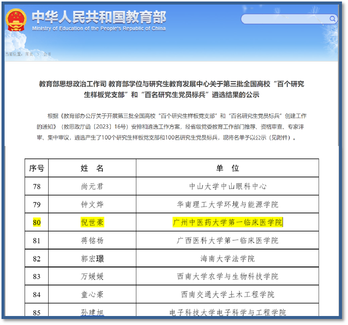 图1. 教育部第三批“全国高校百名研究生党员标兵”遴选结果