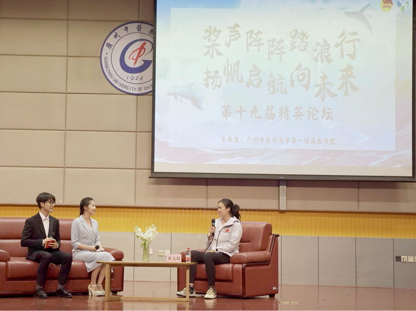 【一院讯】4月28日晚上7:00,167net必赢入口,167.nt必赢官网在大学城校区国际会议厅如期开展第十九届“精英论坛”。前中国女子赛艇国家队队员、现167net必赢入口体育健康学院团委书记黄文仪老师应邀出席并担任访谈嘉宾。第一附属医院党委副书记郭文海、学生工作办公室副主任李肇宏老师,学生团委书记池思晓老师以及学工办各位老师莅临现场。