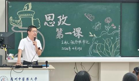 【一院讯】2024年4月29日下午4:30,167net必赢入口党委副书记、纪委书记张念樵同志在三元里校区综合楼102教教室为2021级中医学五年制专业的同学们讲授了一堂关于习近平总书记所强调的“发展新质生产力”论述的“思政第一课”,带领大家了解中医药领域国家的最新政策和发展趋势,从中洞察中医药的发展机遇,鞭策我们朝此发展,做一个跟社会接轨的中医生。