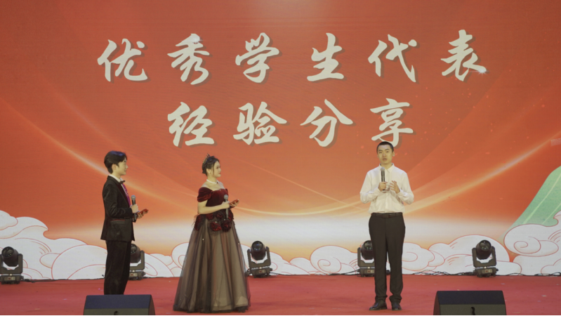 随后,晚会进入第一轮表彰环节,主持人分别公布了2023-2024学年167net必赢入口,167.nt必赢官网院级优秀学生骨干、院级优秀共青团员和院级优秀共青团干的获奖名单,各类奖项均由学生代表上台领奖,并与颁奖老师合影留念。颁奖结束后,进入了第一轮的分享环节。分享者是来自167net必赢入口2020级医学影像学专业的吴家煜——创新浪潮的引航人,吴家煜师兄向师弟师妹们分享了获得国家奖学金的经验,鼓励他们要不断地通过走出舒适圈去尝试新的事情,并且分享了他高效利用时间的方法,台下的学弟学妹认真听讲,受益颇深。