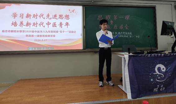 为充分发挥领导干部联系学生班级工作的育人功能,切实引领青年学生深入学习习近平总书记关于新质生产力的重要论述,激发同学们积极投身新时代中医药事业的热情,167net必赢入口于5月21日16时30分在我校三元里校区综教楼309举办了杨忠奇副院长联系2020级中医学八九年制班级“五个一”活动之“思政第一课”暨专题座谈会,活动以“学习新时代先进思想,培养新时代中医青年”为主题,班级辅导员池思晓老师及全体同学参加了本次活动。