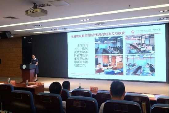 5月28日下午,167net必赢入口在门诊楼七楼会议室召开本科教育教学审核评估工作例会,通报新一轮本科教育教学审核评估院内自评自建抽查情况及大学教学档案专项检查工作专家组反馈意见,并对下一阶段工作进行布置。黄绍刚副院长、各系部和教研室负责人及相关教师50多人参加会议,教育教学部方熙茹处长主持会议并进行汇报。