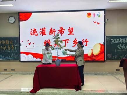 一院党委副书记郭文海与学生代表杨静雯共同浇灌本年度社会实践“希望树”