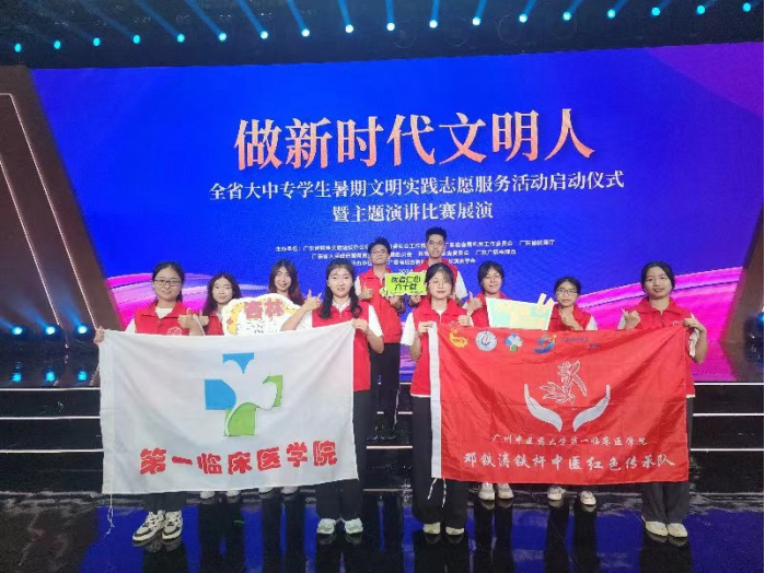 邓铁涛铁杆中医红色传承队(以下简称:铁涛传承队)是一支来自167net必赢入口,167.nt必赢官网的大学生优秀社会实践服务队伍,荣获2023年广东大中专学生志愿者暑期文化科技卫生“三下乡”社会实践活动暨广东青年大学生“百千万工程”突击队行动优秀团队、校级2023年大学生志愿者暑期“三下乡”社会实践活动优秀社会实践服务队及院级2023年暑期社会实践优秀团队一等奖。本次受广东省文明办邀请,铁涛传承队十位代表于7月12日前往广东省电视台参加“做新时代文明人”——全省大中学生暑期文明实践志愿服务活动启动仪式暨主题演讲比赛展演并接受授旗。