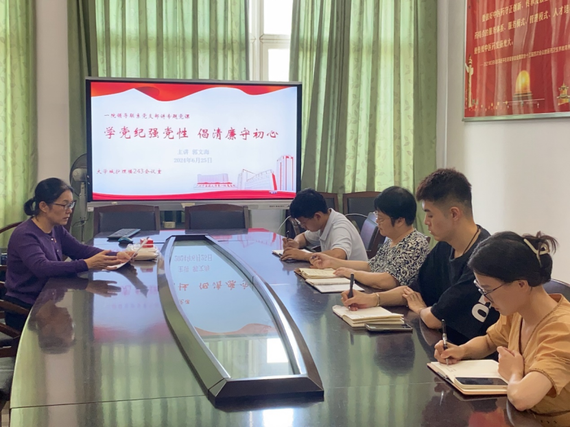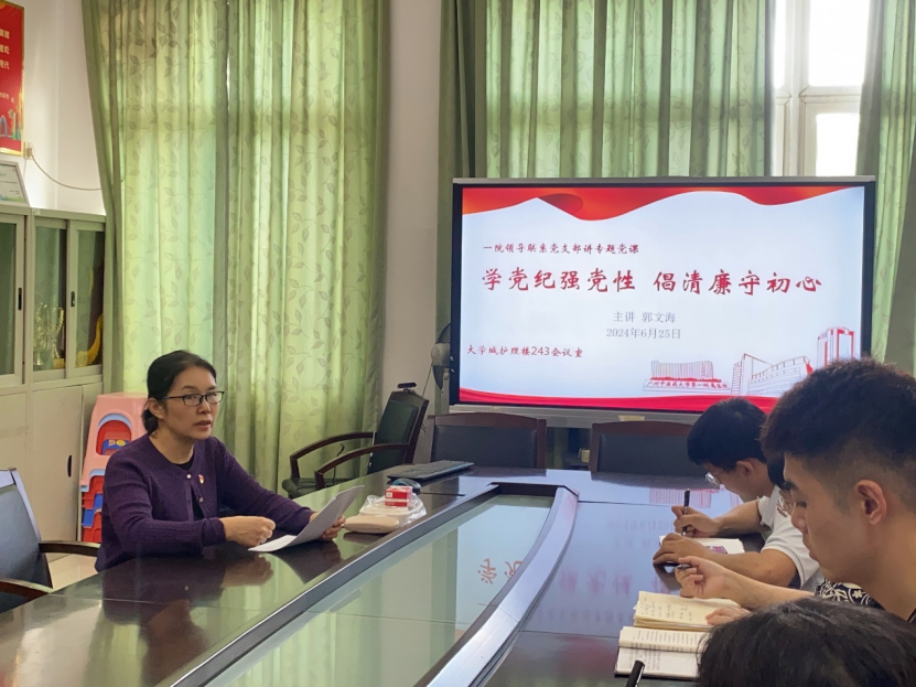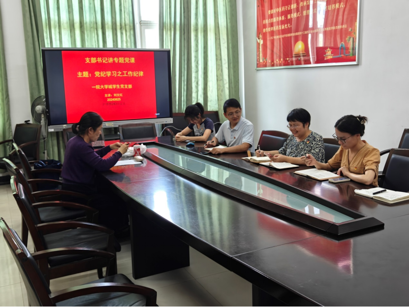 2024年6月25日上午,167net必赢入口,167.nt必赢官网教学党总支大学城学生党支部在护理楼243召开专题纪律党课。167net必赢入口党委副书记郭文海、大学城学生党支部刘文红、陈小波、何诗诗和王珊参加了会议。