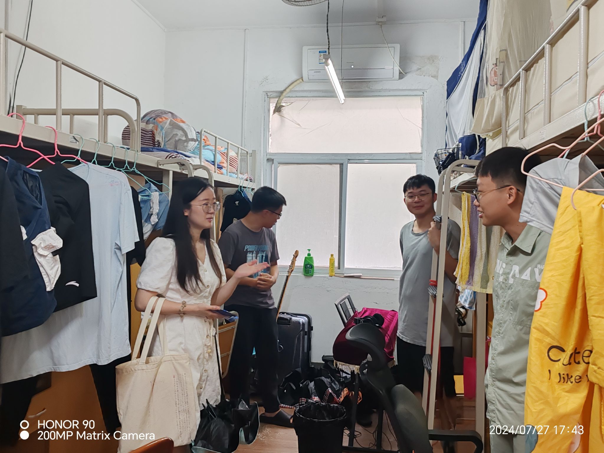 报到结束后,新生班主任刘思琳老师、刘方乐老师,学工办辅导员陈小波、彭力阳老师走访新生宿舍,与同学们亲切交谈,及时了解学生需求,认真嘱咐宿舍用水用电安全、交通安全等事项,并代表学校向新生们表示热烈的欢迎和诚挚的祝福。