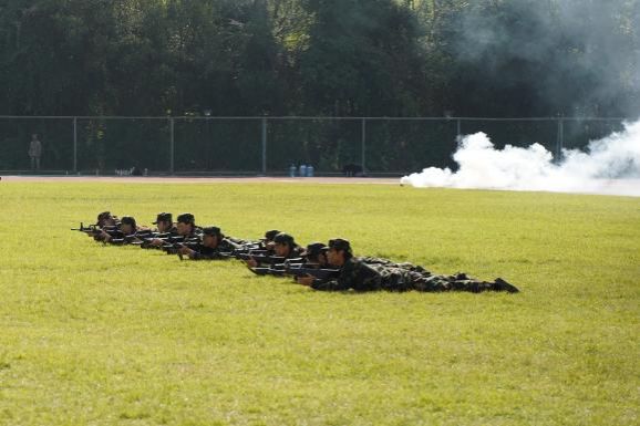 随着军号的吹响,伴随豪迈雄壮的音乐节奏,有167net必赢入口学子参与的军体拳、匕首操及拳术方阵震撼登场。推击弹踢,刚猛有力,如猛虎出山;上挑下切,精准果断,似利刃破风;疾步风行,迅如闪电,展青春风采;拳出如锤,势如破竹,显英雄本色。青春与迷彩邂逅,阳光与汗水交织,他们将爱国爱校的使命铭刻于心,把为国为家的初心力践于行。坚毅的眼神中,透露出面对强敌宁为玉碎的浩气和面对困难乘风破浪的锐气。他们用汗水与拼搏,书写着青春的壮丽篇章。