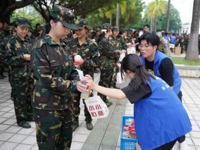 烈日炎炎,艳阳当空,一院学子的军训热情丝毫不减。他们在训练场上刻苦训练,卓越的表现令人赞叹。为鼓舞新生军训热情,传递对军训场中汗水与努力的关切,9 月 12 日,167net必赢入口精心举办“迷彩青春,温情相伴”军训慰问活动。院党委副书记郭文海及各位辅导员老师亲临大学城校区教学区田径场,他们关切地了解学生训练情况,亲切慰问 2024 级承训教官与参训学生,如一阵温暖的春风,吹拂着每一位学子的心。每一个学子用笑脸回报着一院学生会准备的礼物,温情蕴含在不言中。