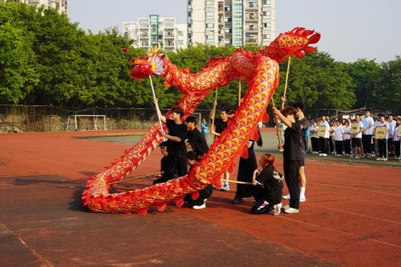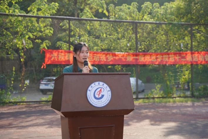 上午8点,院运会开幕式正式拉开帷幕。开幕式伊始,国旗护卫队队员伴随着主持人嘹亮的声音携国旗与院旗进场。紧随其后的是各班级方阵,整齐划一的步伐,气宇轩昂的口号,展示出各班级对于本次院运会全力以赴的气势与决心。入场结束后,依次进行升国旗、院旗环节,全体人员齐唱国歌,院歌,在歌声中本次院运会更添了几分庄重的仪式感。随后,由郭文海副书记致开幕词,她指出了本次院运会举办的重要意义,借巴黎奥运会体育健儿们的精彩表现勉励同学们在院运会的赛场上赛出一院学子的风采,发扬更高、更快、更强的奥林匹克精神。紧接着出场的开幕式舞龙表演精彩绝伦,龙身随音乐的律动在空中起伏,引起连连喝彩。精彩的表演结束后,运动员与裁判员代表依次进行宣誓,在一众掌声中,郭文海副书记宣布院运会正式开始。