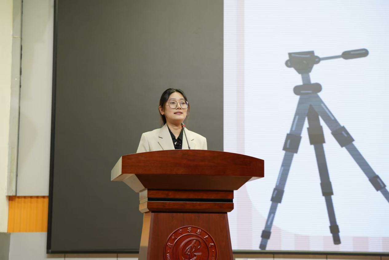 在观众的热烈掌声中,一院心辅站指导老师黄婷老师上台发表了热情洋溢的致辞,表达了对本次微电影大赛的期待与祝福,正式拉开了决赛的帷幕。随着主持人对各参赛作品的精彩介绍,一部部精心制作的心理微电影在大屏幕上依次展现。每部作品播放结束后,参赛队伍代表自信地走上舞台,充满热情地分享他们的创作理念,为团队争取支持。在昏暗的灯光下,大屏幕上的微电影成为了焦点,嘉宾和观众都全神贯注地沉浸在电影的世界中。每部微电影都是一个独特的心灵之旅,深刻地展现了心理内涵与电影艺术的巧妙结合。