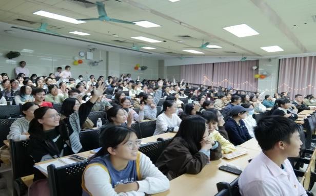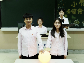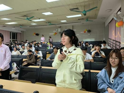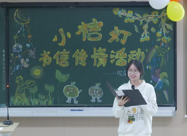 随着童年经典动画旋律的响起,志愿者们步入会场,静待活动的开启。简短而温馨的开场后,进入点灯仪式。教室灯光渐暗,一院学生团委副书记张美珍与第十三届小桔灯书信传情活动负责人肖遥缓步上台。在全场的齐声倒数中,两人共同点亮了象征着希望与梦想的“桔灯”。随之,教室四周“星”光闪烁,主持人谭淑欣宣布第十三届小桔灯书信传情活动正式开启!