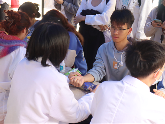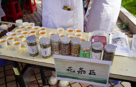 基础活动分区包括推拿区、量血压区、耳穴区、花茶区和中医体质辨识区。各分区活动进行有条不紊,吸引高校众多学子和教职工前来体验。