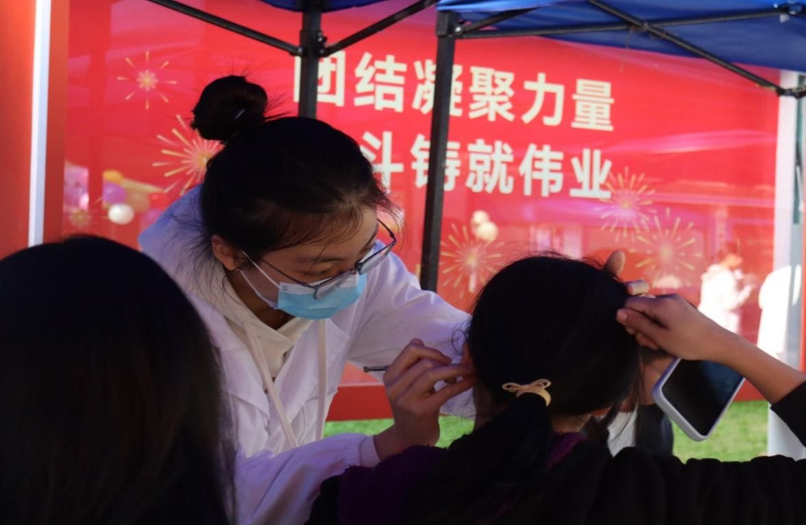 在基础医疗服务外,本次广大活动还提供了花茶区,供来访人员品鉴。笛箫社的《大鱼海棠》,轻盈的乐声抚平同学们焦躁的心灵。同时,八段锦展演与教学也热闹的展开了,一招一式中,动静结合,阴阳调和。在这之后,万众瞩目的美容穴位教学就开始了。可以说,这次的广大之旅丰富而精彩,志愿者们服务专业、认真、暖心,让前来体验的师生的频频点赞。
