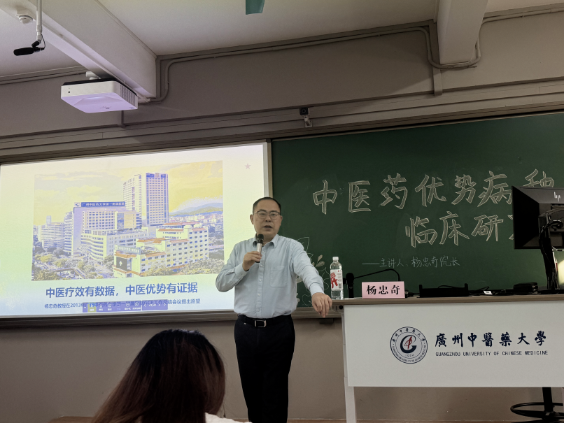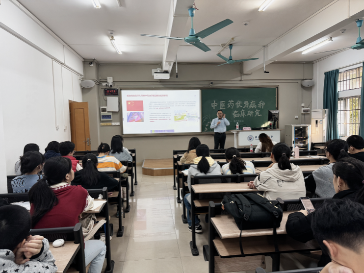紧接着,杨院长详细介绍了中医药临床研究的情况,通过一系列生动的案例,展示了中医在特定病种治疗中的显著优势。他特别提到,2006年,167net必赢入口开展国家多中心新药临床试验,是我国承接国际多中心新药临床试验最早、项目最多的中医院。中医“整体观念”和“辨证施治”的原则,在重症肌无力、股骨头坏死、抗击非典以及登革热疾病治疗中发挥了不可替代的作用。同时,杨院长也分享了个人及团队在中医临床研究中的最新成果,进一步增强了同学们对中医科学性的认识。
