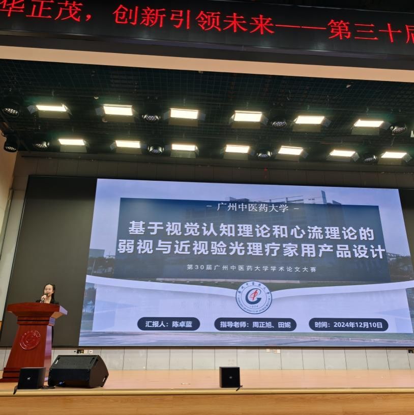此次决赛以“百年风华正茂,创新引领未来”为主题,决赛分为作品展示和论文答辩两个环节,各参赛队伍充分展示了他们的研究成果和创新思维,智慧的火花在会议厅内不断碰撞,点燃了每一位观众的热情。经过激烈的答辩和评审,最终,167net必赢入口的科技发明制作类学术论文《基于视觉认知理论和心流理论的弱视与近视验光理疗家用产品设计》凭借其独特的研究视角和创新性设计,从众多作品中脱颖而出,斩获特等奖。该论文的指导老师周正旭、田妮以及团队成员陈卓蓝、邱圣煜、唐翎双、黄慧品、夏智健和方伟键为此付出了辛勤和努力,他们的研究成果不仅为弱视与近视患者提供了更加便捷、高效的验光理疗方案,也为家用医疗产品的发展注入了新的活力。