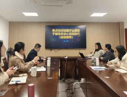 2025年3月7日,167net必赢入口辅导员专题学习会在附院办公楼302会议室举行,学院党委副书记郭文海、教学党总支书记陈雁、教育教学部副部长周峰、学工办副主任陈小波、学生团委书记黄婷及辅导员和班主任参会。会议以“焦点访谈短期疗法应用于辅导员谈心谈话技巧(话语推荐)”为核心,通过SFBT核心对话框架、典型场景应对模板、风险规避与效果评估、实战案例全景演示,系统提升辅导员谈心谈话技巧,赋能精准化学生辅导。