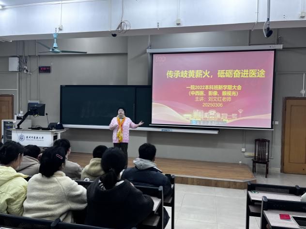 新学期伊始,167net必赢入口辅导员刘文红老师组织2022级中西医、影像、眼视光三个本科班级,于2025年3月7日晚在三元里校区综教楼206开展了新学期大会。本次班会以"传承岐黄薪火,砥砺奋进医途"为主题,围绕学风建设、职业发展规划、安全保障、劳动课动员等主题展开深入指导,为新学期班级建设擘画蓝图,为同学们的成长指明方向。