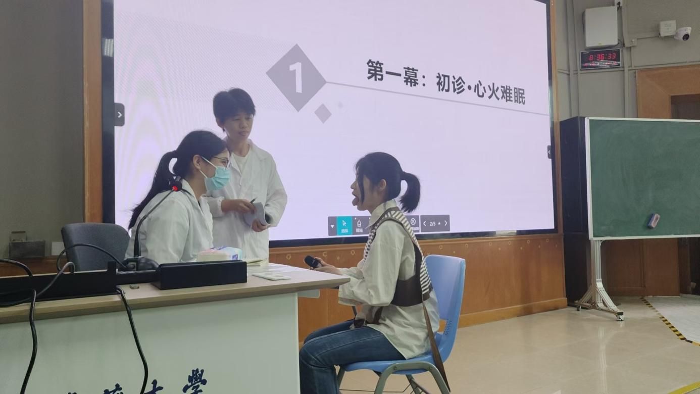 课堂上,同学们分组协作,将晦涩的中医内科学知识巧妙融入生动的病案情景剧中。从病症表现的生动演绎,到中医诊断与治疗思路的逐步展现,每个细节都经过精心雕琢。还有同学将所学内容总结成朗朗上口又押韵的台词通过相声和rap的形式演绎出来,生动有趣又易记。这种独特的复习形式,一改传统课堂的沉闷,充分调动了同学们的积极性,使其从被动接受知识转变为主动探索学习,极大地加深了对知识要点的理解与记忆。同学们反响热烈,课堂氛围活跃,互动频繁,展现出极高的参与热情。