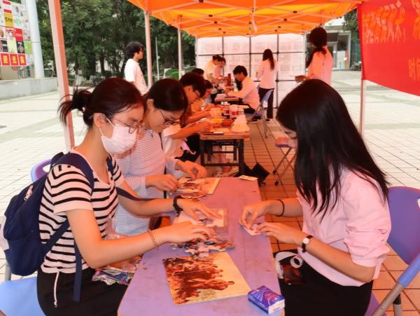 忆昔思贤承风范,与时俱进创荣光。一院学生团委于4月19日在大学城校区第一食堂前空地开展了“红韵游园寻根脉,青春向党践初心”主题游园活动。活动中,学生们依据历史伟人的生平事迹,揭晓伟人的身份之谜;在投球挑战环节,他们以丰富的历史知识,轻松应对了历史问题的挑战;在重大历史事件拼图活动中,学生们亲手拼接,重温了那段波澜壮阔的革命历程;同学们以石英砂颜料绘制出一幅幅富有文化底蕴的图画,让传统文化的魅力在创意中焕发新生。同学们通过扫描NFC芯片,参观了线上数字历史展馆,深刻感受到了历史的厚重与辉煌。此外,一院学生团委展出了各团支部的活动照片,这些照片记录下各团支部团日活动中的美好瞬间,绘出青春的绚丽篇章。