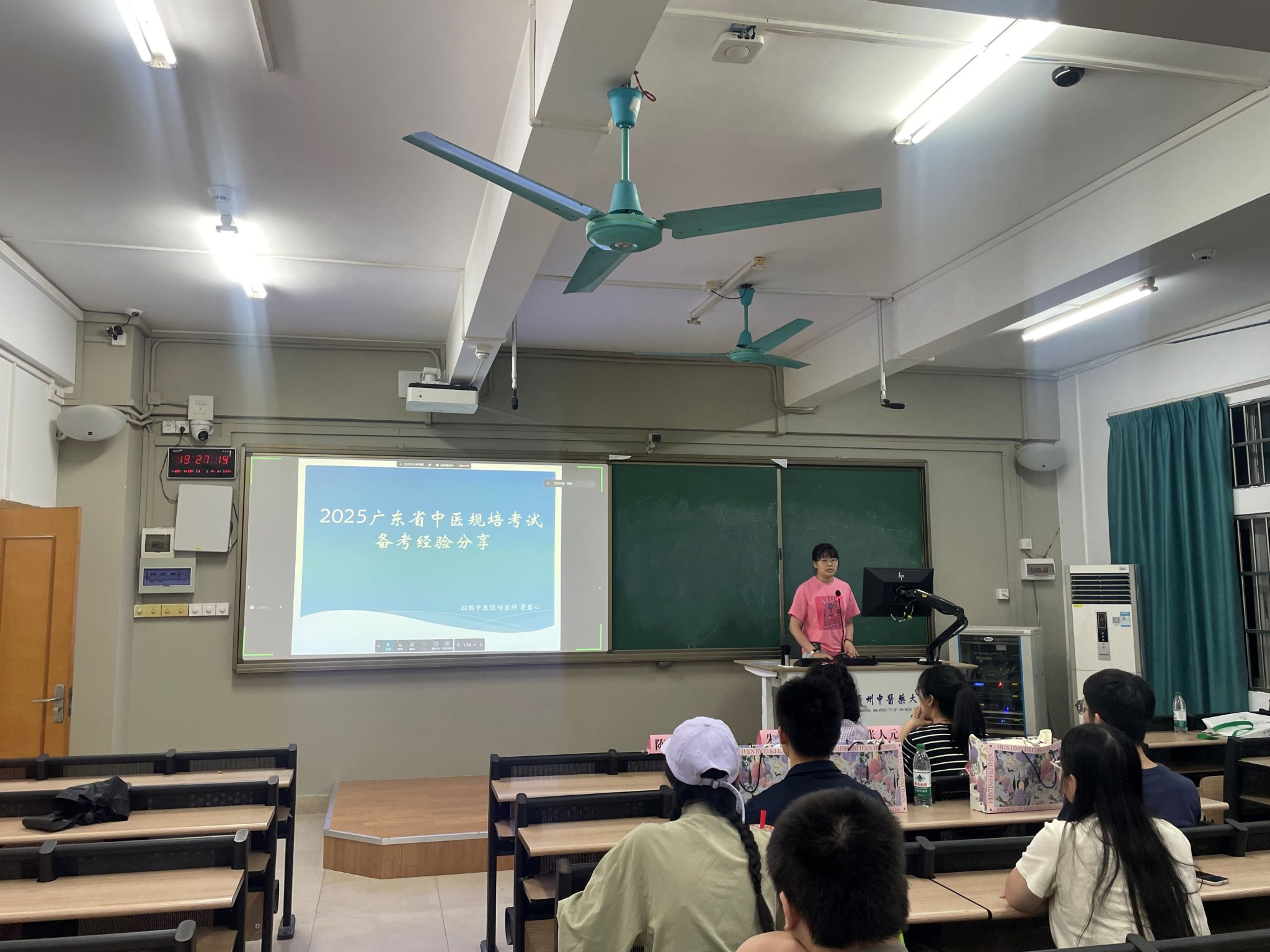 随后,朱尧焓老师围绕“规培培养方案与招考政策”进行介绍。朱老师详细介绍了规培政策的最新动态,通过对比近三年政策演变趋势,重点剖析了报考流程、考核内容、基地选择及培训周期等毕业生关切的问题,同时提醒同学们注意时间节点和材料准备的细节,并建议结合个人兴趣与职业目标理性选择规培方向。活动特别邀请四位优秀规培学员代表分享经验。他们结合自身备考经历,从“笔试复习策略”“临床技能考核要点”“面试技巧”及“规培期间学习规划”等多角度展开交流,并针对时间管理、心理调适等问题提出实用建议。在互动答疑环节,毕业生们就“跨省规培注意事项”“复习时间合理分配”等问题与嘉宾展开交流讨论。