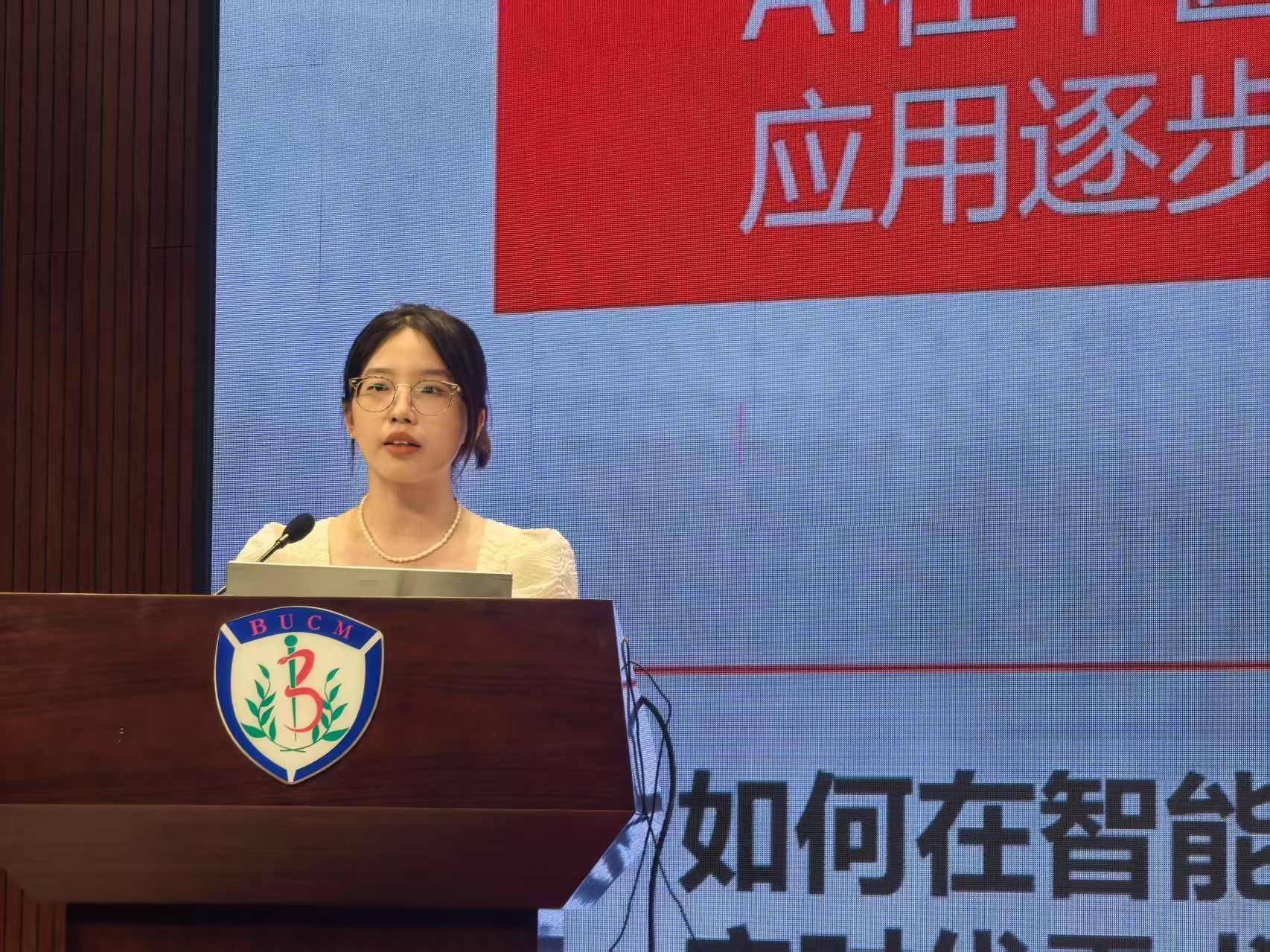 本次会议以“数智领航,共创AI时代中医药课程教材新生态”为主题,聚焦中医药教育数字化转型,并面向全国中医学九年制学生收集征文,167net必赢入口参会学子积极投稿并都被收录到大会论文集中。其中,2020级中医学九年制陈嘉慧同学围绕“中医药发展的守正与创新”所撰写的论文——《人工智能赋能下中医学长学制“铁杆中医”人才培养的实践路径探索》在众多文章中脱颖而出,被推荐为优秀作品并作为学校唯一代表在中医药院校九年制学生交流论坛上进行主题汇报。她以一名九年制学生角度,在王琦院士所提出的中医学高等教育“三大挑战及五大问题”基础上,总结了中医九年制“铁杆中医”培养的四大困境,引起了现场同学的强烈共鸣。同时,她提出从中医九年制“经典理论-临床实践-科研创新”三维培养要素出发,探索一条“铁杆中医”人才培养的实践路径。汇报结束,现场掌声一片。