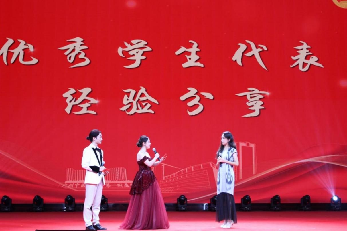 在获奖节目颁奖环节,《杏林长歌-薪火耀岭南》和《玉鸟》以振奋人心的舞台表现脱颖而出,荣获“最佳组织奖”。最后,全体师生共同唱响《星辰大海》,并齐声高唱团歌,齐诵“请党放心,强国有我”,激昂的歌声与誓言将晚会推向高潮。