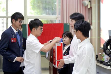 现场的学生代表认真聆听了各位候选人的演讲,在深思熟虑后投出了手中神圣的一票。