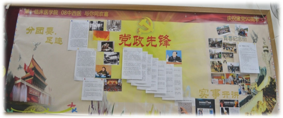 最后,08本科中西医团支部以“党政先锋”为主题,凭借其浓厚的党团氛围设计、频繁的宣传栏更新次数,以及用心的PPT宣讲而荣获一等奖。而09本科中医和10本科中西医2班团支部、08本科中医团支部则获得二等奖。他们别出心裁的布置也吸引了在场评委们的眼球。尤其是09中西医团支部制作的“卷轴”,做工精细,色调鲜明,主题突出,形式大胆,令人赞叹,受到了大部分评委的青睐。三等奖的获得者分别是06七年制团支部、08七年制团支部、09七年制团支部、10本科中医团支部、09本科中医团支部。最后10本科实验班团支部、07七年制团支部和10本科中西医1班团支部获得优秀奖。