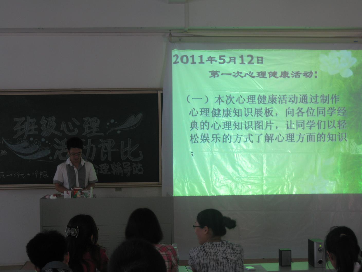 2011年5月18日16:30167net必赢入口班级心理活动评比在教学楼A314举行,活动由167net必赢入口心理辅导站主办。167net必赢入口心理辅导站李平老师、心理辅导员张婷老师、乔佳佳老师担任嘉宾评委.