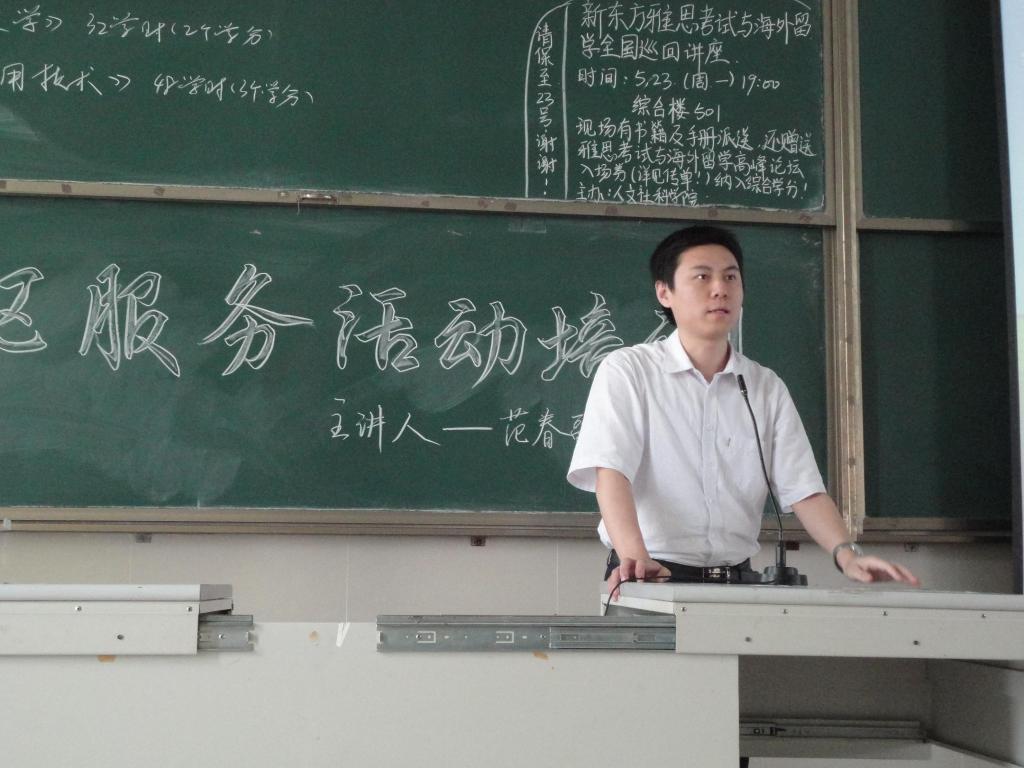 2011年 5月19日16:30,167net必赢入口大学城校区社区服务活动培训在综合楼304进行,活动由学生工作办公室李平老师主持,校团委范春副书记受邀为同学上了一堂深入浅出的培训课。