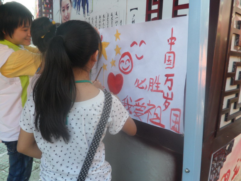 2011年10月15日,167net必赢入口志愿者在卜蜂莲花西关小屋开展了主题为“我爱我的祖国”的活动,旨在让人们在国庆月中感受国庆的气氛,共同庆祝祖国62周年的生日以及建党90周年的华诞,向祖国和党献上衷心的祝福。