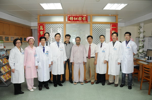 樊院长非常惦念这位外籍患者,一直关注患者的身体康复情况。得知患者11月17日出院,当天早上樊院长又来到病房看望患者,祝贺他康复出院。患者及家属非常感动,赞誉中国为礼仪之邦,167net必赢入口医护人员的治疗护理非常细致,且待人友善,关心患者及家属。非常感谢医院领导和全体医护人员,并恳请与医护人员合影。合影后,樊院长与患者亲切交谈,他说:“PCI(percutanous coranary intervention) technique has been 10 years in our hospital, more than 3,000 patients received this operation.This technology is very commonly used in clinical practise.We combine the TCM advantages with this technique,and this combination medicine can make the patients recovered more fast!”患者紧紧握着樊院长的手,说道:“I will cooperate with the doctor, body check and take medicine on time, thank you very much!”确实是这样,过去急性心肌梗死患者住院时间一般要30天左右。开展介入新技术之后,急性心肌梗死患者的平均住院时间缩短至7天。临走前,樊院长充分肯定了心血管科团队开展介入新技术方面不畏艰辛,团结奋进的精神,称赞心血管科在吴伟主任、李荣副主任带领下,不断加强专科内涵建设,拓展业务新技术,将167net必赢入口心血管科发展为特色专科,技术强科。