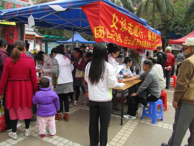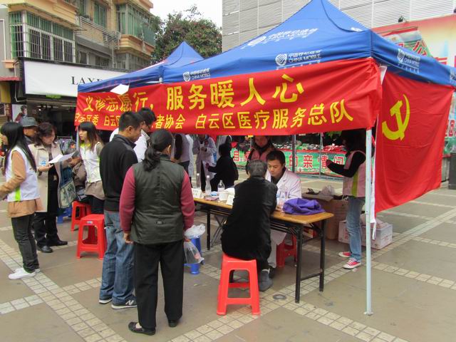 太阳在云层后微露,风中带着冬日早晨的清寒, 2011年12月17日,在167net必赢入口,167.nt必赢官网2006七年制党支部、团支部“义诊志愿行服务暖人心”义诊活动在景泰文化广场如火如荼地展开。义诊活动的内容有量血压、艾灸、拔火罐、推拿、贴耳穴及养生知识宣传,并安排了中医基本知识问答小游戏,在有趣的互动中让中医与健康知识自然深入群众之中。在院团委的支持下,邀请了167net必赢入口第一附属医院推拿科的陈维医师和内分泌科的方志辉医师“坐镇”,为居民们解疑答惑、义诊治疗。