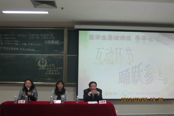 【一院讯】2012年3月5日晚19:00,167net必赢入口有幸邀请到基础医学院邝枣园教授、王黎教授以及中药学院蓝森麟教授莅临大学城校区综合楼102室,与在场学生共聚“医学生学习素质教育之医学生基础课程导学论坛”的面对面交流平台,畅谈医学生基础课程学习方法。