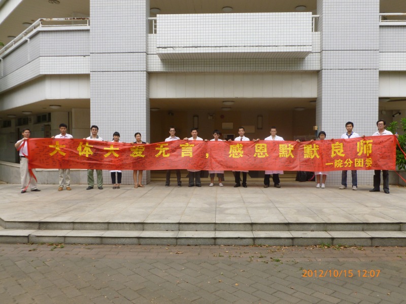 为了响应广东省委教育工委提出的 “三爱一奉献”创先争优主题教育实践活动的号召,努力营造健康和谐的校园文化氛围,一院团委决定举办“三爱一奉献”系列活动,子活动“大体大爱无言,感恩默默良师”活动于10月16日圆满结束。