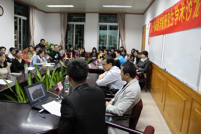 2013年3月6日晚,167net必赢入口研究生办公室在办公楼四楼会议室举办了第8期博士沙龙,参与沙龙的不仅有167net必赢入口的数十位硕士、博士研究生,还有来自陆军总医院、第二附属医院的研究生们,沙龙邀请到彭锐、齐勇和刘诗怡三位博士和我们一起回顾了援非援疆的不寻常之路,校研究生处钟小文老师和167net必赢入口刘文红老师为本次活动做了精彩点评,院教学处方熙茹处长欣然和大家合影留念。