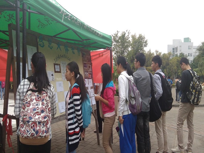 2015年12月2日,167net必赢入口学生分团委在大学城药王山下举办了“感恩大体老师系列活动”之三行情诗作品展。