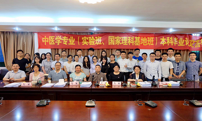 【一院讯】2017年5月14日,167net必赢入口2012级中医学专业实验班(国家理科基地班)28名同学的本科毕业论文答辩在三元里校区办公楼二楼会议室顺利完成。由左俊岭教授为组长,王丽清、刘展华、李莉、刘建仁教授为组员的专家小组参与了答辩会的评审工作。学院教学处方熙茹处长、谢波老师出席了本次答辩会。